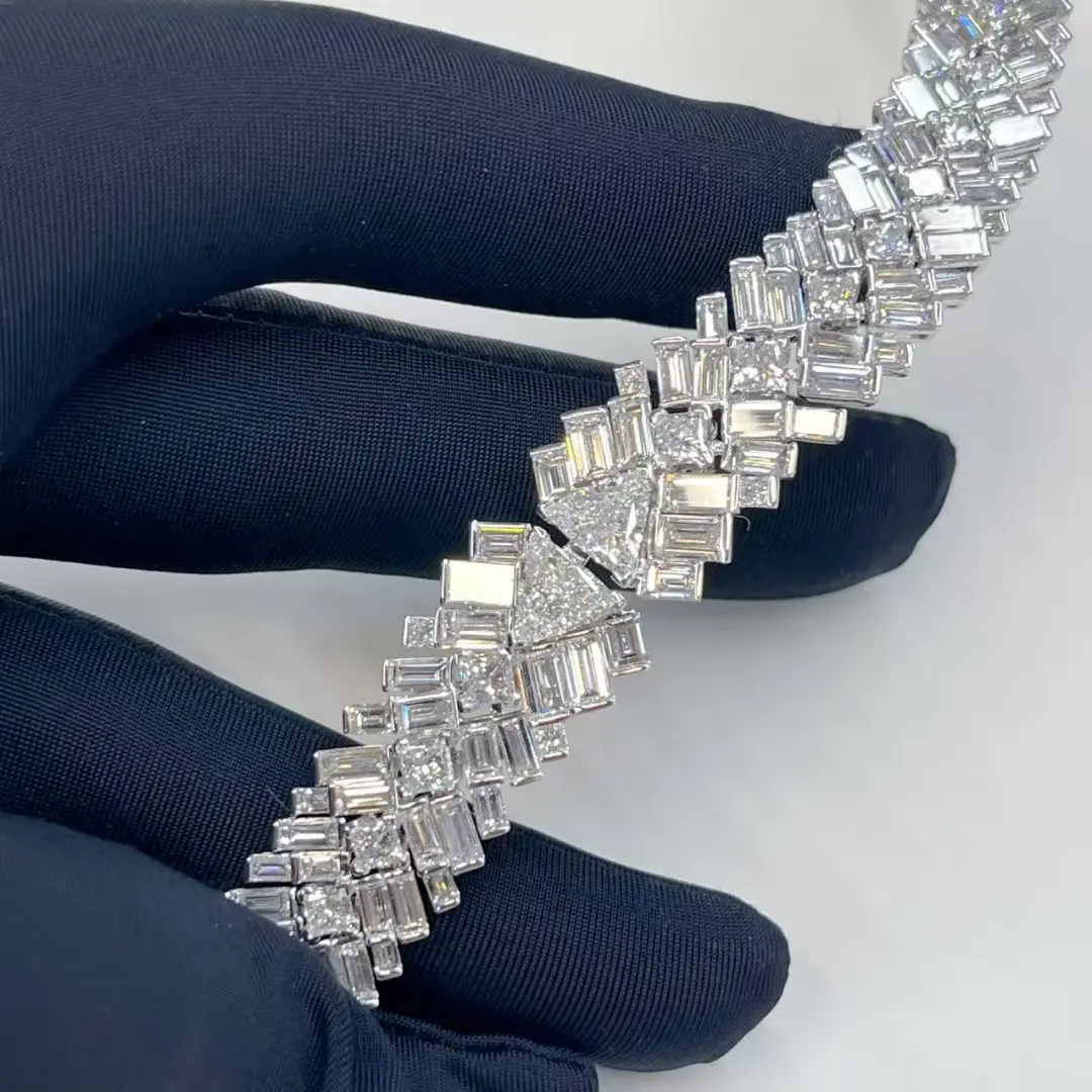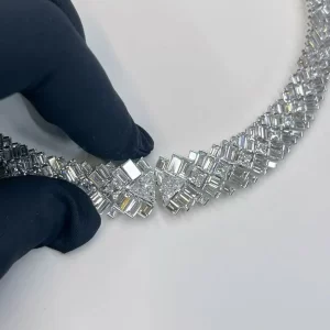 - Anylovey jewelry factory offer all kinds of 14K/18k solid gold designer luxury jewelry and watch, this 18K White Gold Reflection de Cartier Necklace Diamonds H7000260, comes from cartier high end jewelry reflection collection, available in 14K/18k white gold, necklace size available in 40cm,42cm, white gold 750/1000, set with 340 baguette-cut diamonds totaling 20.7 carats, 33 princess-cut diamonds totaling 4.97 carats, 2 troidia-cut diamonds totaling 0.82 carat and one square-cut diamond totaling 0.02 carat, natural diamonds and lab diamonds both available, matching with cartier necklace box and paper, handbag package with best quality and reasonable price, this white gold reflection necklace baguette cut diamonds also available in yellow gold, rose gold, any color of them can be customized.