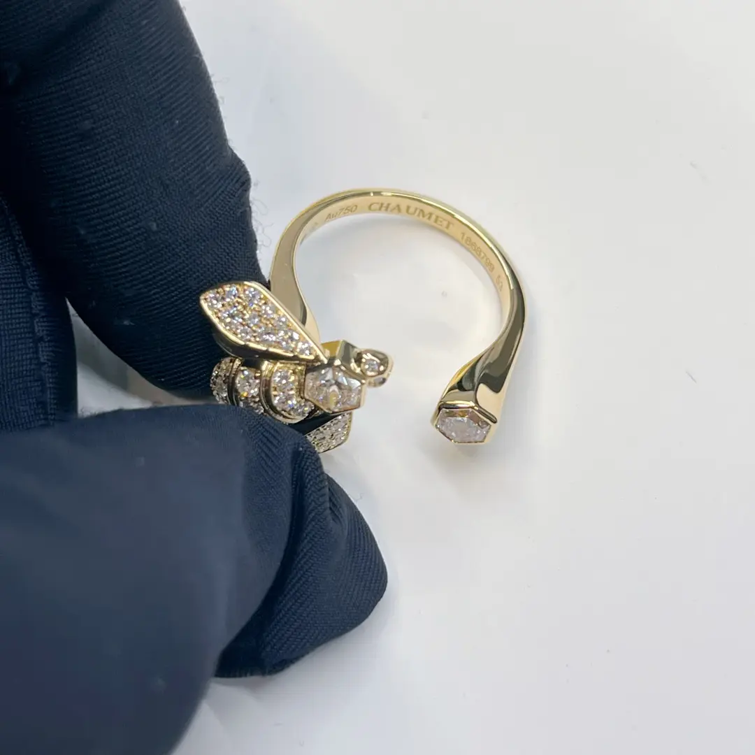 Be the first to review “18K Yellow Gold Bee de Chaumet Ring with 2 Pieces Hexagonal Cutting Diamonds 085065”